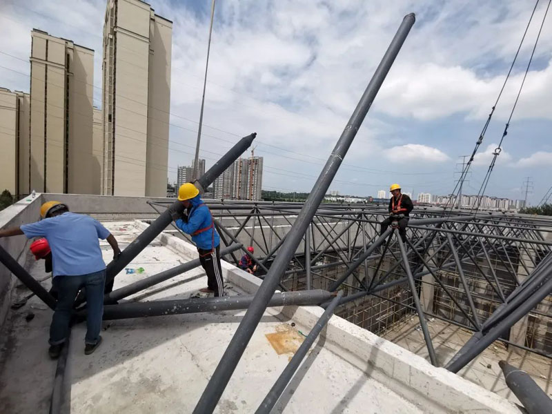 本工程為螺栓球節(jié)點(diǎn)正方四角錐網(wǎng)架,其材質(zhì)選用GB699中的45號(hào)鋼。螺栓球直徑zui大為?250mm,zui小直徑?120mm。網(wǎng)殼桿件采用直縫或無(wú)縫焊接鋼管,材質(zhì)為Q235-B,桿件zui小型號(hào)為?60*3.5,桿件zui大型號(hào)為?219*16。高強(qiáng)螺栓選用40Cr,對(duì)于M12-36的高強(qiáng)螺栓強(qiáng)度等級(jí)10.9S,對(duì)于M39-64的性能等級(jí)9.8S。支座底板、墊板選用Q355-B鋼。焊條型號(hào)Q235鋼之間E43系列;Q235鋼與鋼Q355之間E43系列。